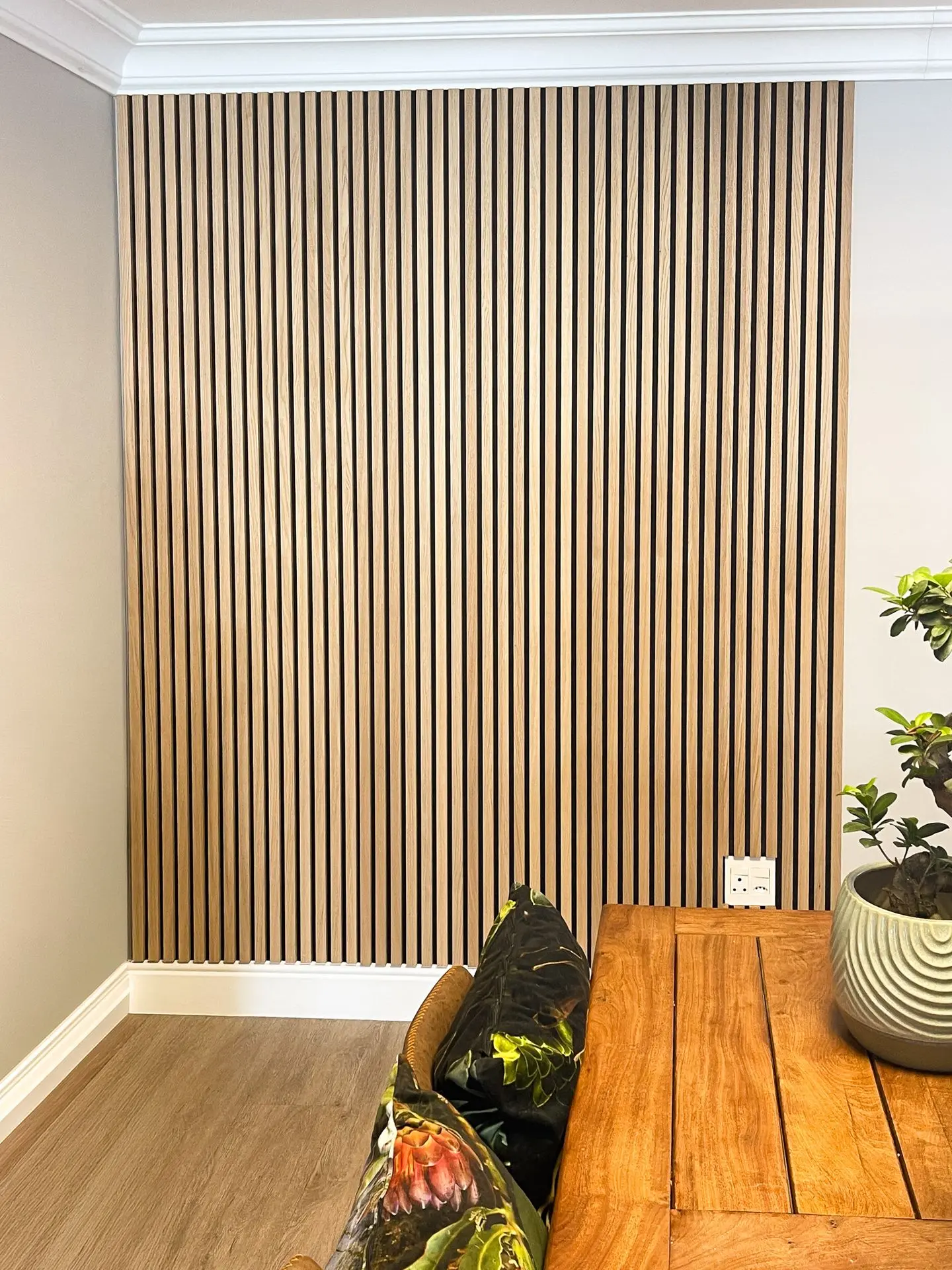These walls are panelled with WoodUpp to turn a plain wall into a feature. The panelling adds warmth, texture, and depth, creating a simple change that makes a noticeable difference to the space.